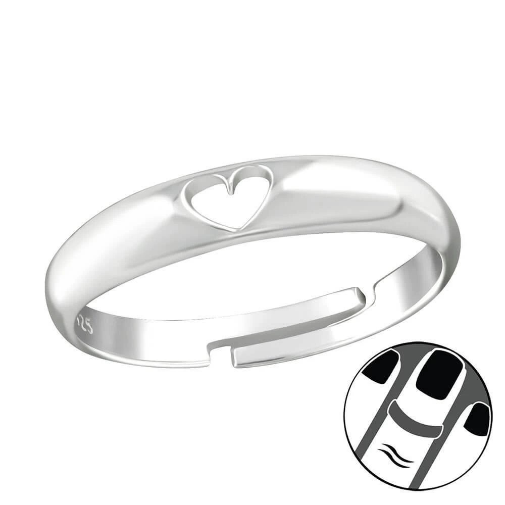Bague de phalange en argent avec une forme de coeur découpée en son centre.