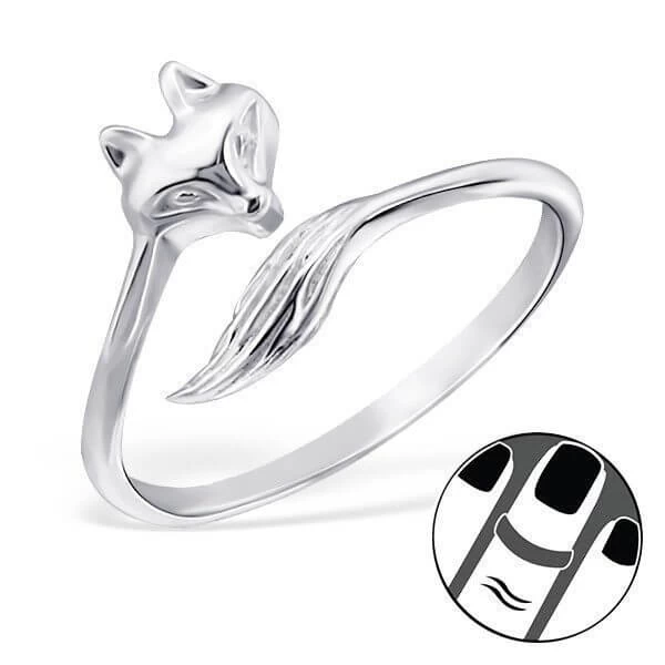 Bague en argent avec un tête de renard d’un côté et une queue de renard de l’autre.