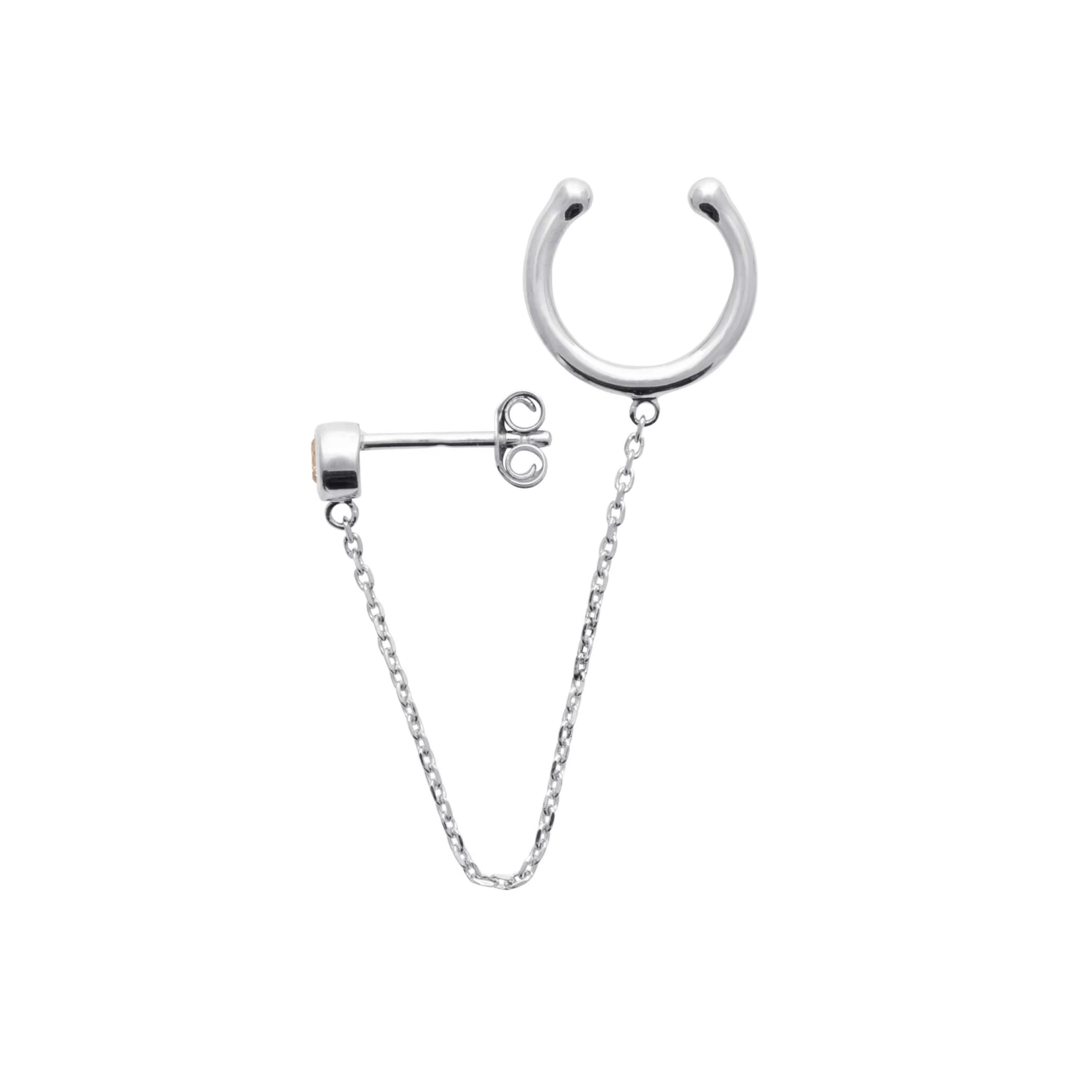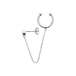 Cette boucle d’oreille innovante associe un clou d’oreille orné d’un oxyde de zirconium brillant à une bague élégante, le tout relié par une délicate chaîne en argent. Vendue à l’unité, cette pièce en argent 925 apporte une touche moderne et raffinée à votre look.