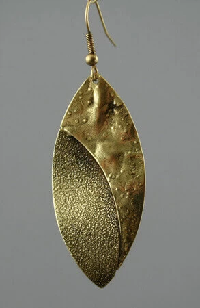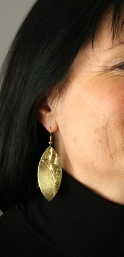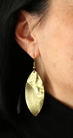 Boucle d’oreilles en forme de feuille avec 2 textures (piquée et lisse).
