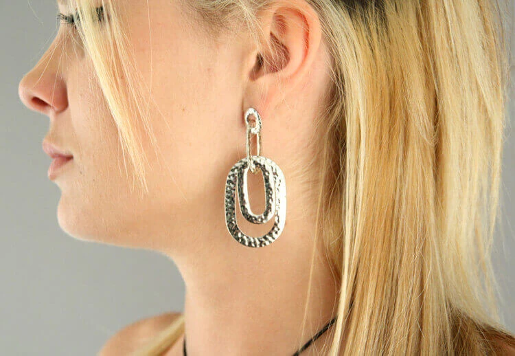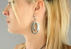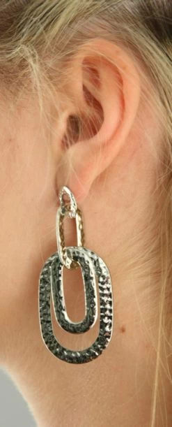 Boucles pour oreilles percées. 4 anneaux ovales et plats en métal martelé.