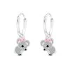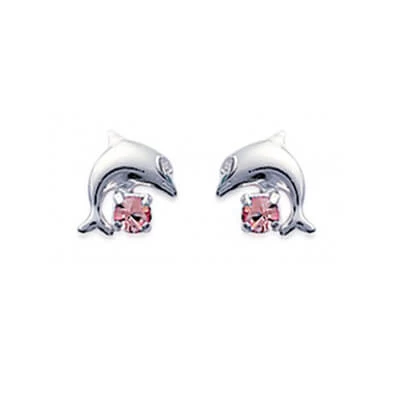 Boucles d’oreilles en forme de dauphin avec une pierre de couleur rose.