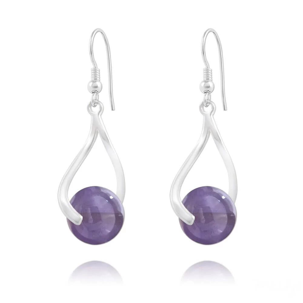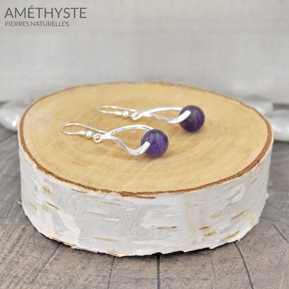 Boucles d’Oreilles Dormeuses en Argent 925 et Perle mauve en Améthyste de 10mm de diamètre.