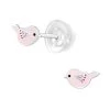 Boucles d’oreilles pour enfant en argent représentant un petit renard suspendu à un cristal.