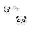 Boucles d’oreilles pour enfant en argent représentant une petite renarde avec une petite fleur rose au coeur pailleté sur une oreille.