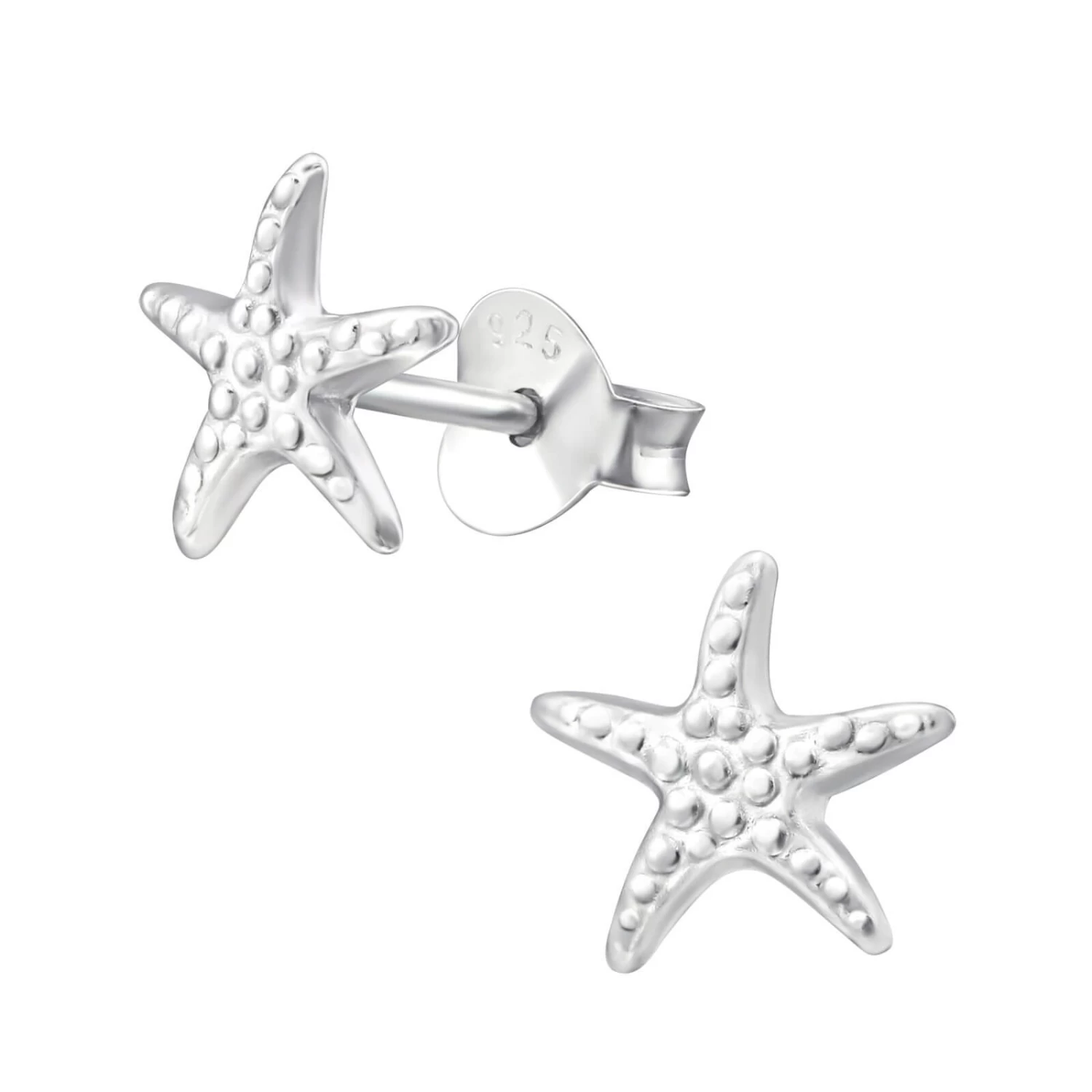 Petites boucles d’oreilles pour petite fille en argent 925 en forme d’Étoile de mer.