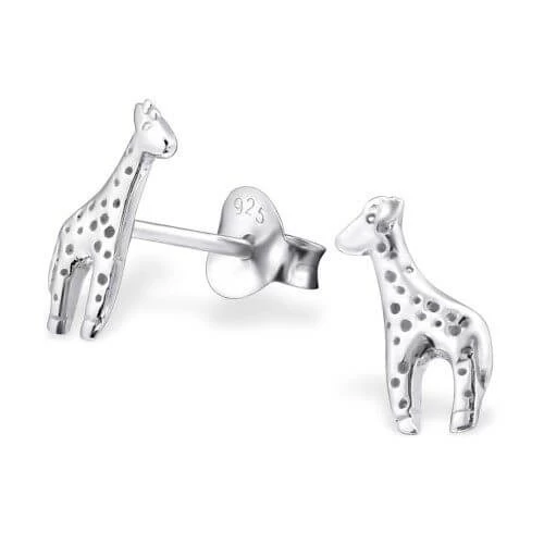 Boucles d’oreilles pour enfant en argent en forme de girafe.