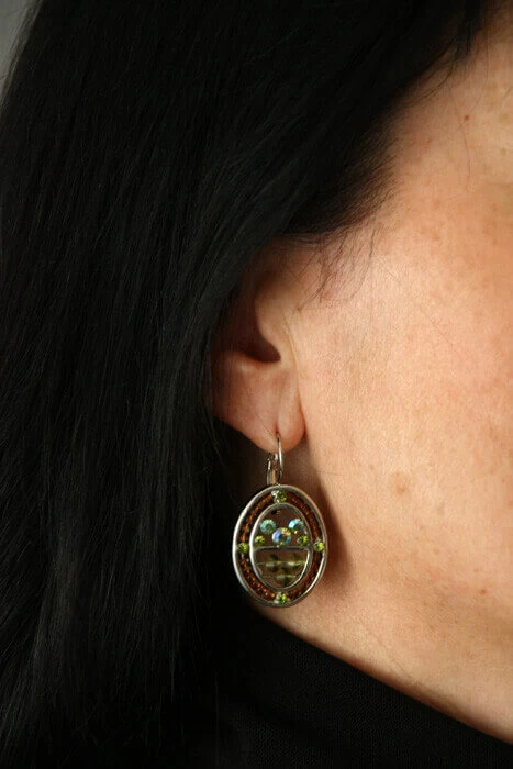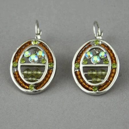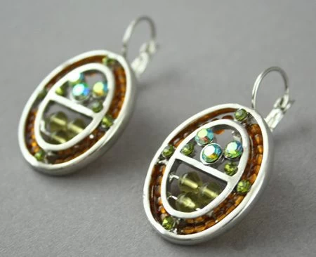Boucles pour oreilles percées, ovales avec perles et strass.