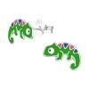 Boucles d’oreille en argent en forme de papillon avec des bandes multicolore. Ses ailes sont légèrement incurvées.
