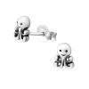 Boucle d’oreille pour petite fille en argent en forme de papillon bicolore. Le haut de ses ailes est violet et le bas est rose .