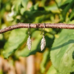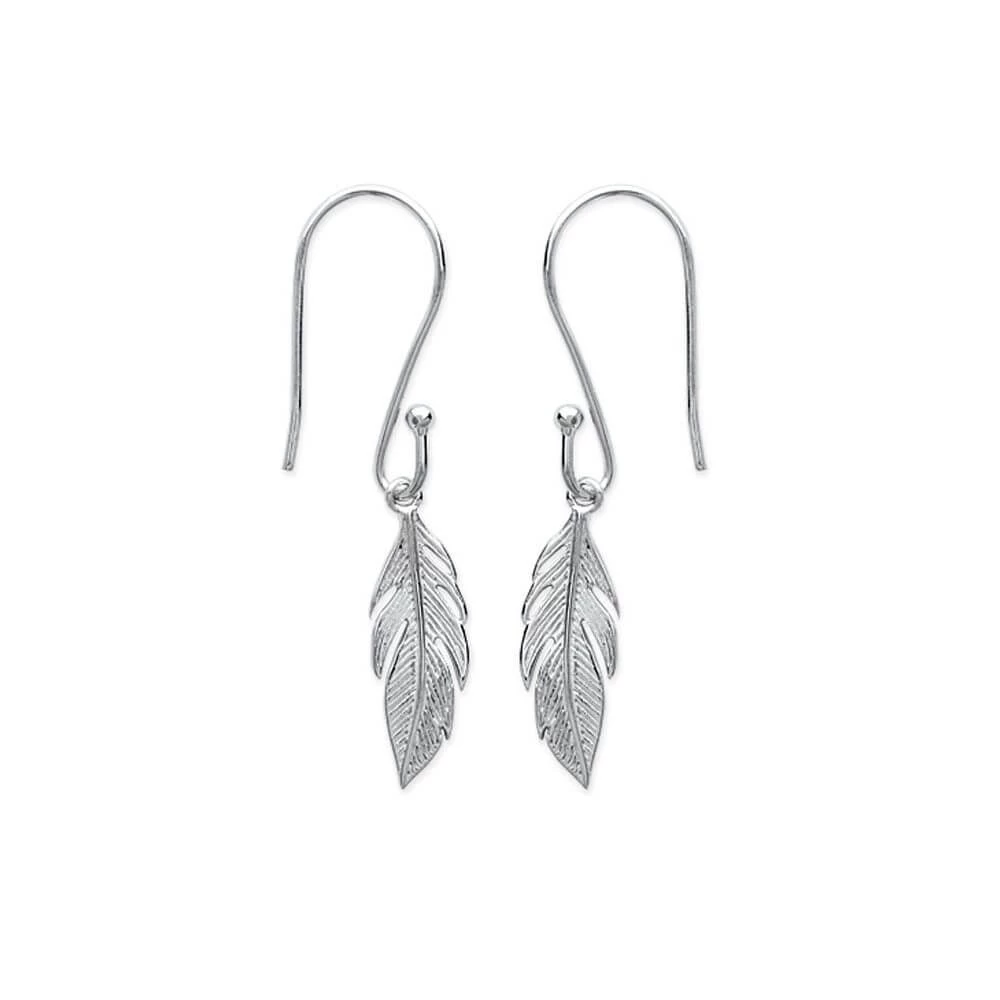 Boucles d’oreilles en argent en forme de plume montée sur crochet.