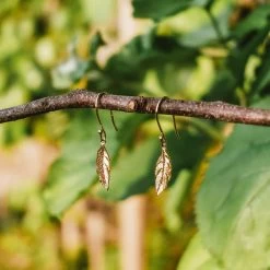 Boucles d’oreilles plaqué Or en forme de plume montée sur crochet.