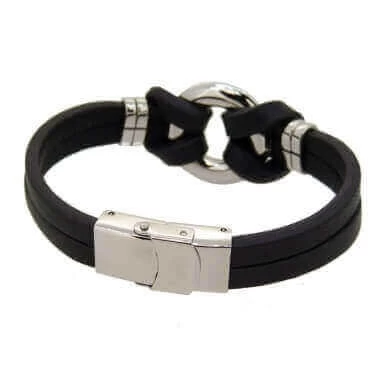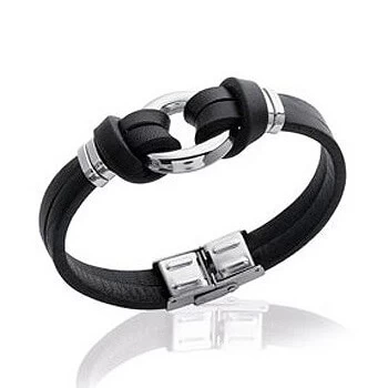 Bracelet Anneau Acier Et Cuir Noir