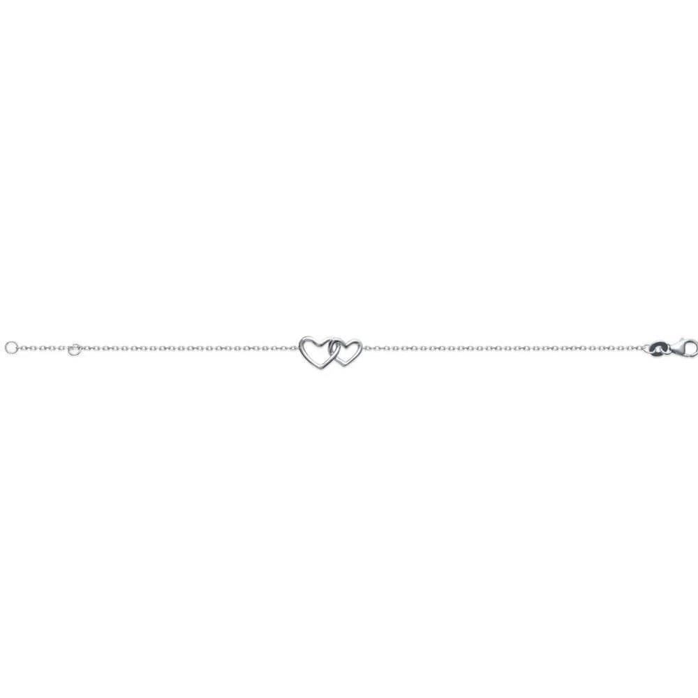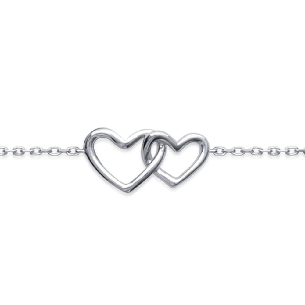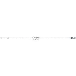 Bracelet en argent composé de deux coeurs enlacés en argent montée sur chainette mailles fines et se fermant par un mousqueton.