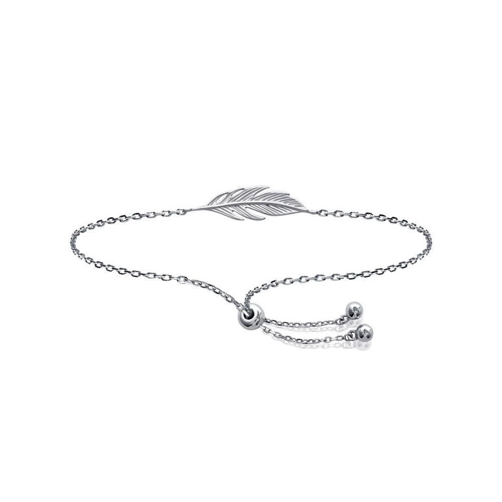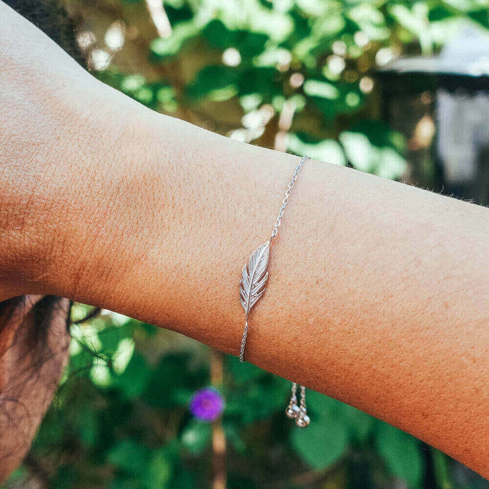Bracelet en argent composé d’une jolie plume en argent montée sur chainette mailles fines.