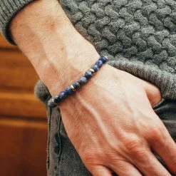 Bracelet pour homme composé de perle en Sodalite et de petites perles plates en acier.