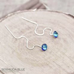 Chaînes d’Oreilles en Argent 925 ornées d’un authentique Cristal Emeraude.