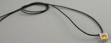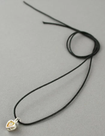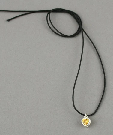 Collier comprenant un pendentif « petit cœur » en argent avec verre taillé et facetté incrusté monté sur un anneau et un lien en coton ou en peau.