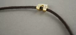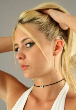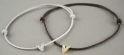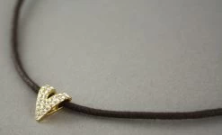 Collier avec un pendentif en forme de « V » incrusté de strass sur un lien en coton ou peau.