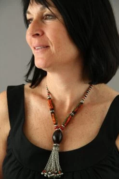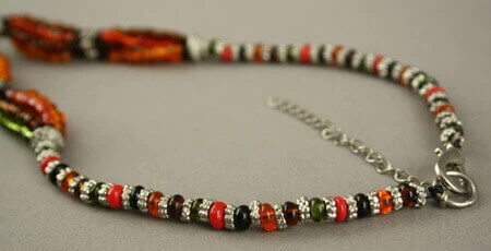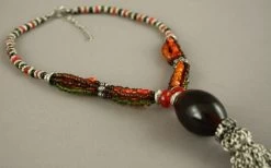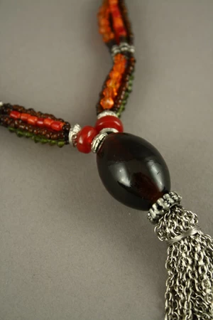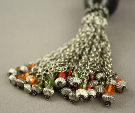 Pompon en résine et métal retenu par 6 rangs de perles multicolores.