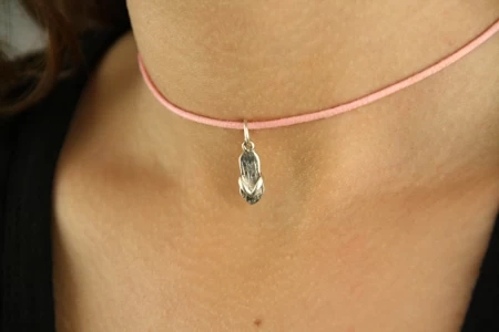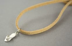 Collier spécial été composé d’un pendentif « Tong » en argent et d’un lien en coton ou en peau.
