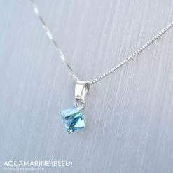 Collier en argent 925 orné d’un authentique Cristal en forme de cube bleu.
