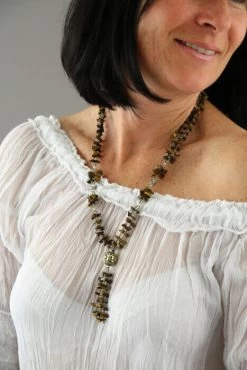Collier composé d’un subtile mélange de pierres naturelles et perles transparentes.
