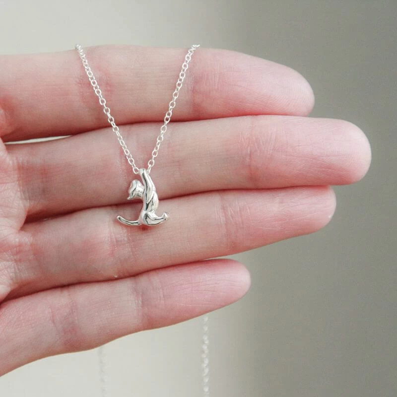 Composé d’une chaine en argent et d’un pendentif en chat suspendu, ce collier pour femme est original à tous les égards. Très élégant tout en restant discret et sobre, c’est le bijou idéal à porter au quotidien. Il est en effet très léger, surtout avec la chaine qui fait seulement 1 mm d’épaisseur.