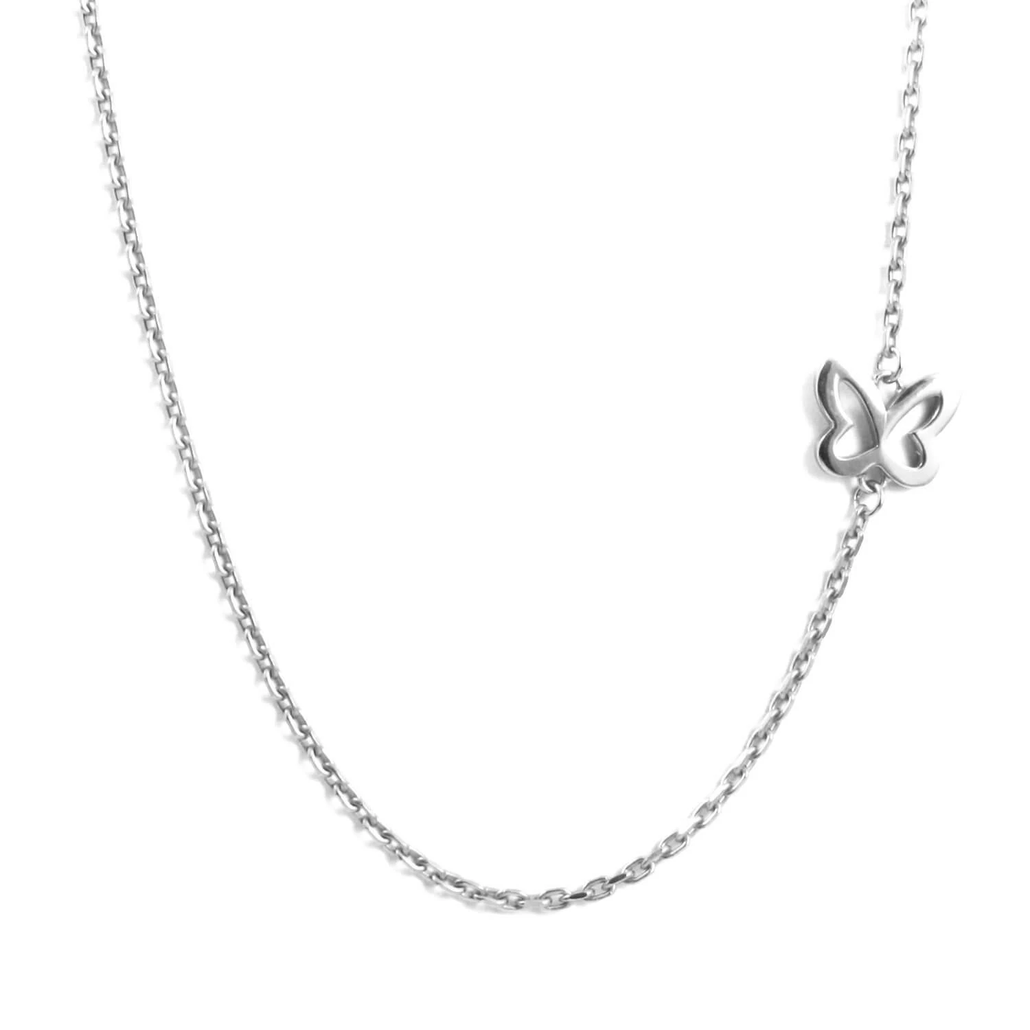 Composé d’une chaine en argent avec un fermoir et 3 anneaux montés au tour d’un papillon en argent.