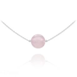 Ce collier ras de cou est composé d’une perle en quartz rose naturelle avec 1 petite perle en argent de part et d’autre, le tout monté sur une chaîne en argent.