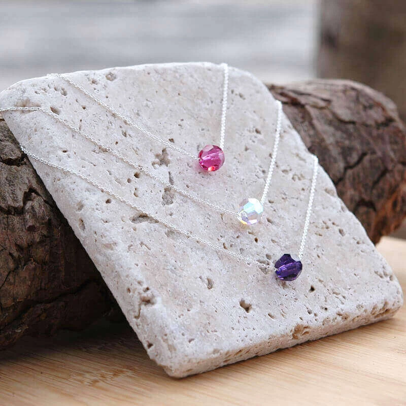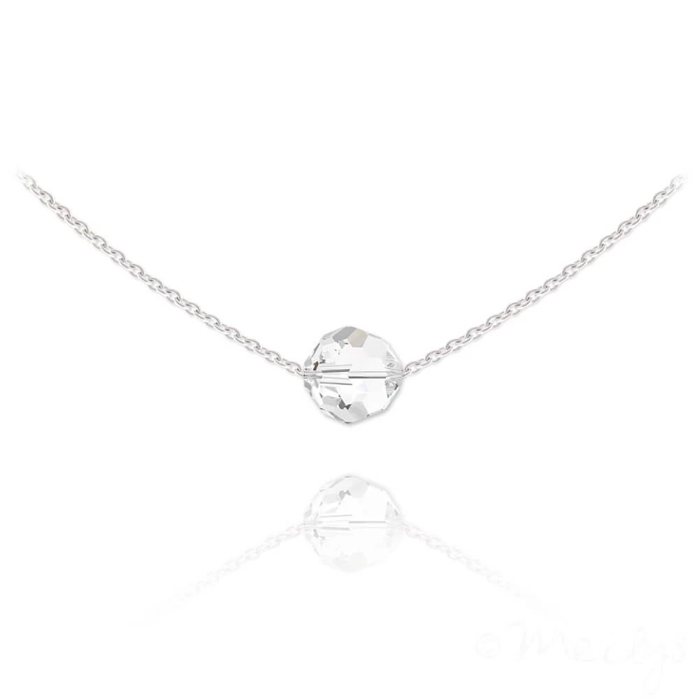 Collier Ras De Cou Perle Facette Cristal Blanc Et Argent