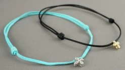 Pendentif trèfle à 4 feuilles « porte bonheur » couleur argent avec strass sur un lien de peau ou de coton.