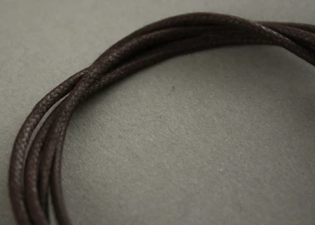 Lien de coton ciré marron froncé de diamètre 2 mm.