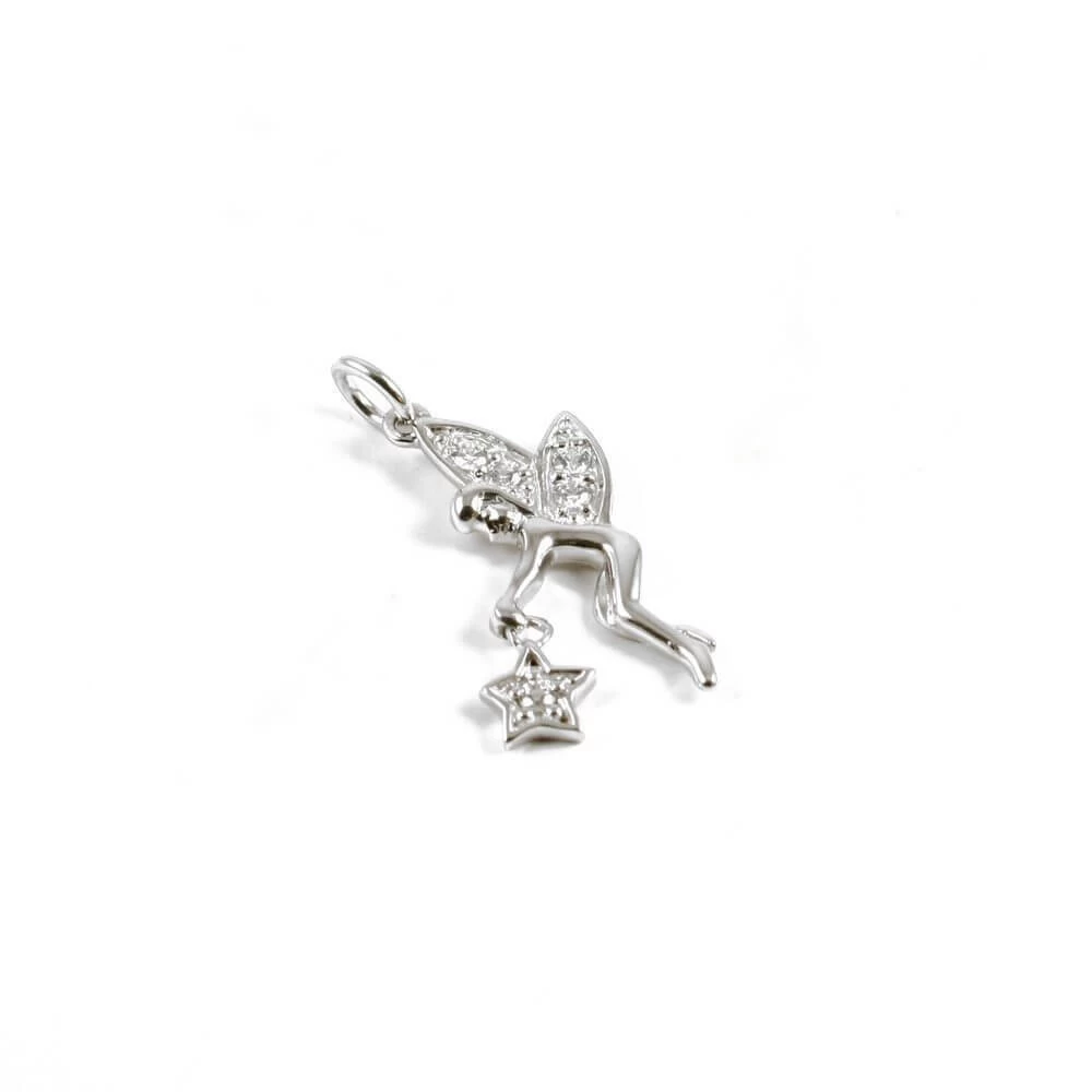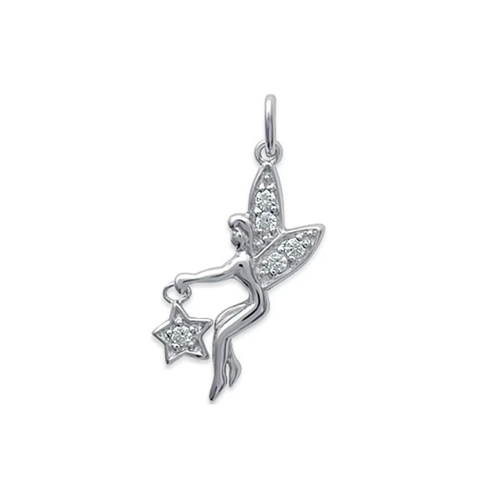 Pendentif argent 925 et zirconium représentant une petite fée tenant une étoile.