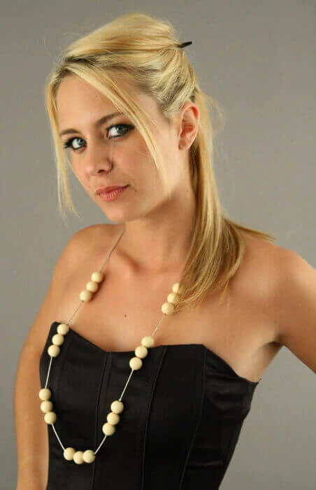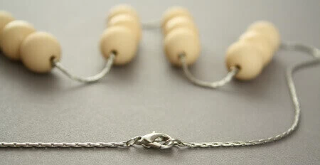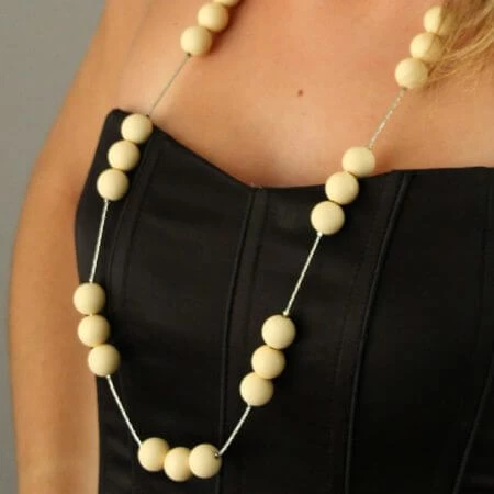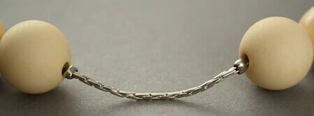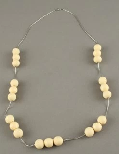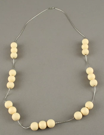 Couleur : sautoir, perles, chaine, métal, plastique, beige