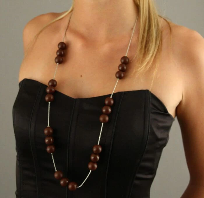Sautoir composé de 7 x 3 perles montées sur une chaine.