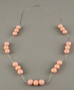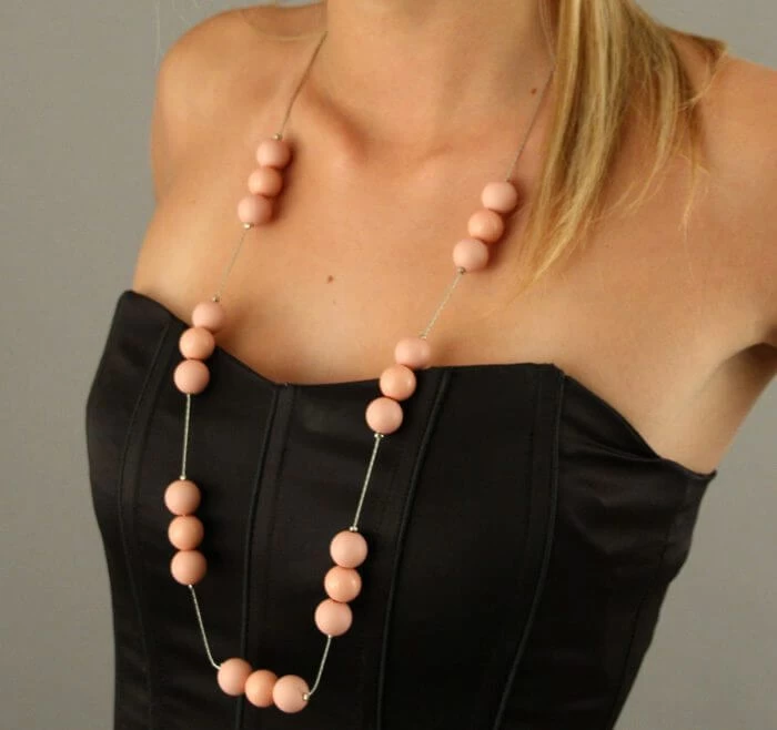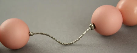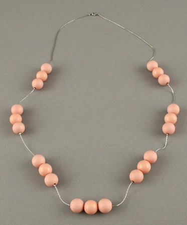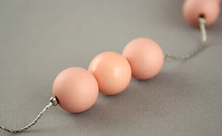 Couleur : sautoir, perles, chaine, métal, plastique, rose